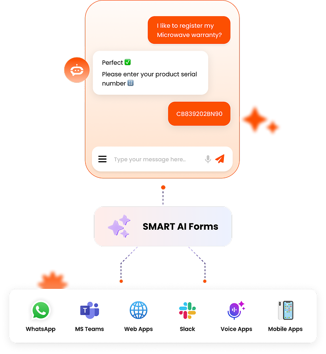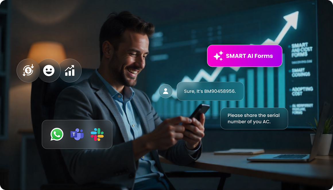 That’s where AI Forms change the game. By making forms smart, conversational, and accurate, they guide users step by step and live where your users already are — on WhatsApp, Microsoft Teams, Slack, and mobile apps. The result? Higher adoption, lower costs, and happier users.