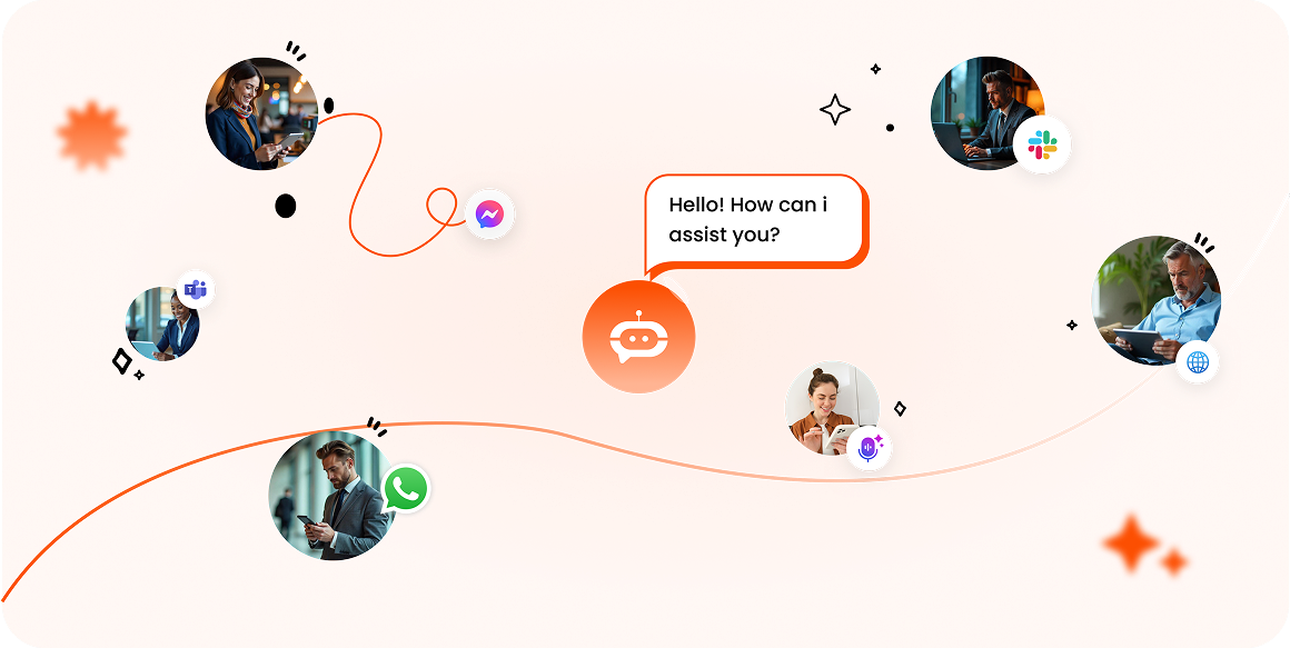 The same form works seamlessly across web, mobile, WhatsApp, Microsoft Teams, Slack, and Messenger.
