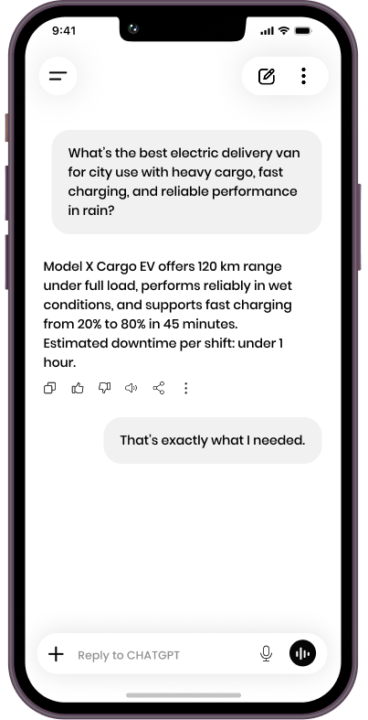 In automotive, where a shopper may ask an AI assistant to compare an ICE SUV, a hybrid crossover, and a compact EV in one conversational thread, brands now compete to be the source AI chooses to summarize.