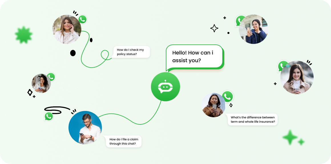 • A WhatsApp life insurance chatbot for customer service is available even on holidays, weekends, or during emergencies — no wait times, no call drops.